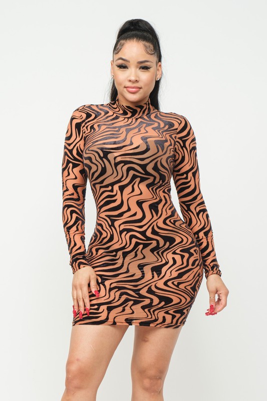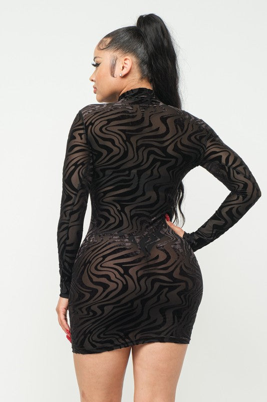 Crafted from a luxe blend of 70% polyester, 20% nylon, and 10% spandex, this dress sculpts your figure while offering breathable comfort and stretch. The geo burnout mesh creates a sultry, modern edge, while the suede accents add rich depth and sophistication. With its long sleeves and mini length, the Top Geo Dress perfectly balances allure with elegance—ideal for nights out, chic parties, or special occasions where confidence is your best accessory.
