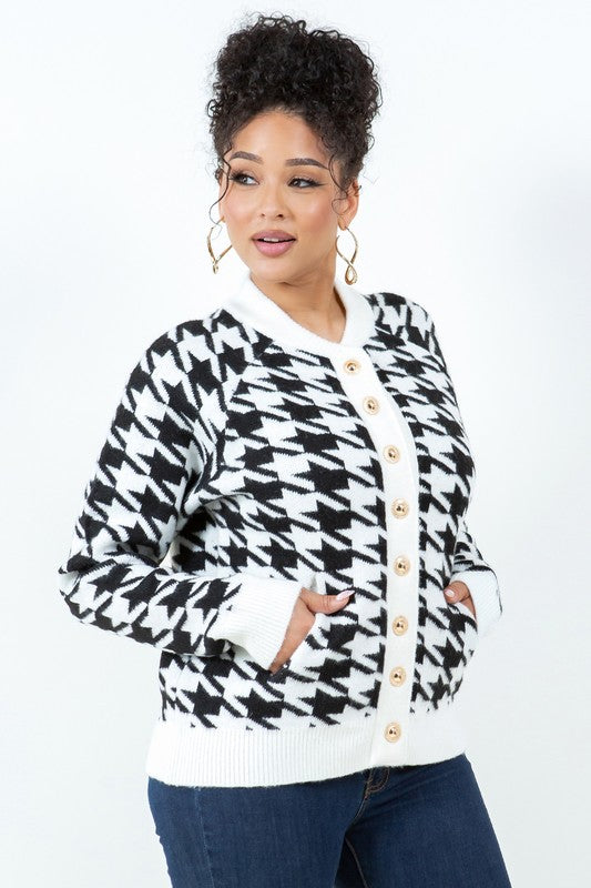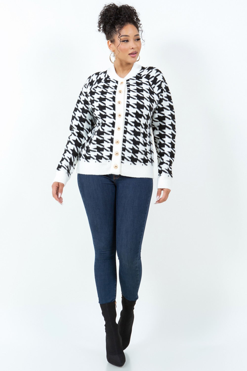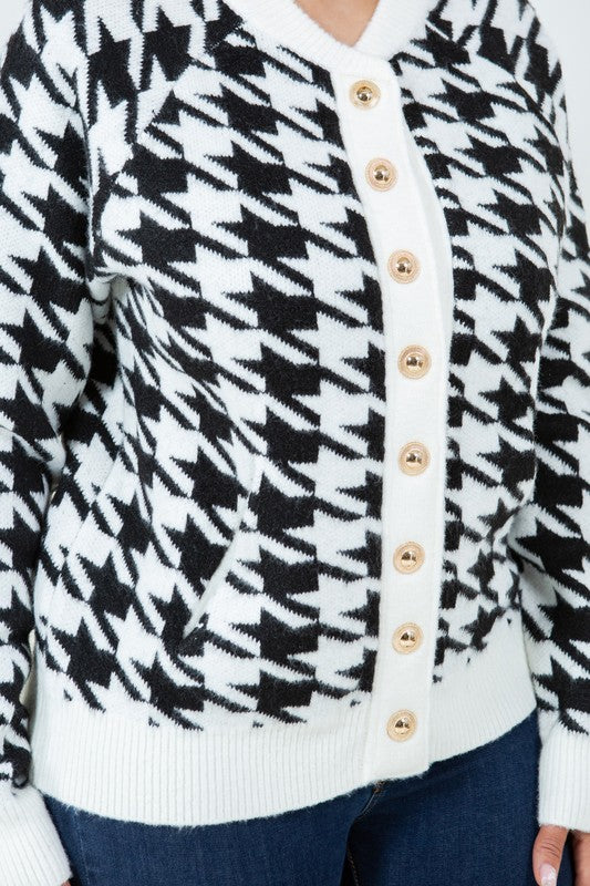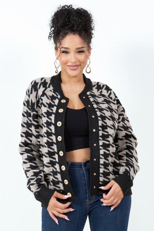 Perfection Jacket– Houndstooth Cardigan Bomber Jacket with Pocket