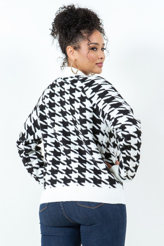 Meet the Perfection Top, where classic meets contemporary in the most stylish way. This houndstooth cardigan bomber jacket is the perfect layering piece to elevate your everyday look.