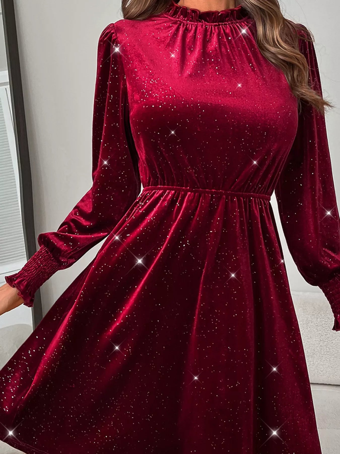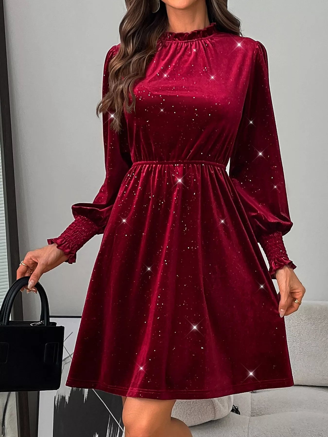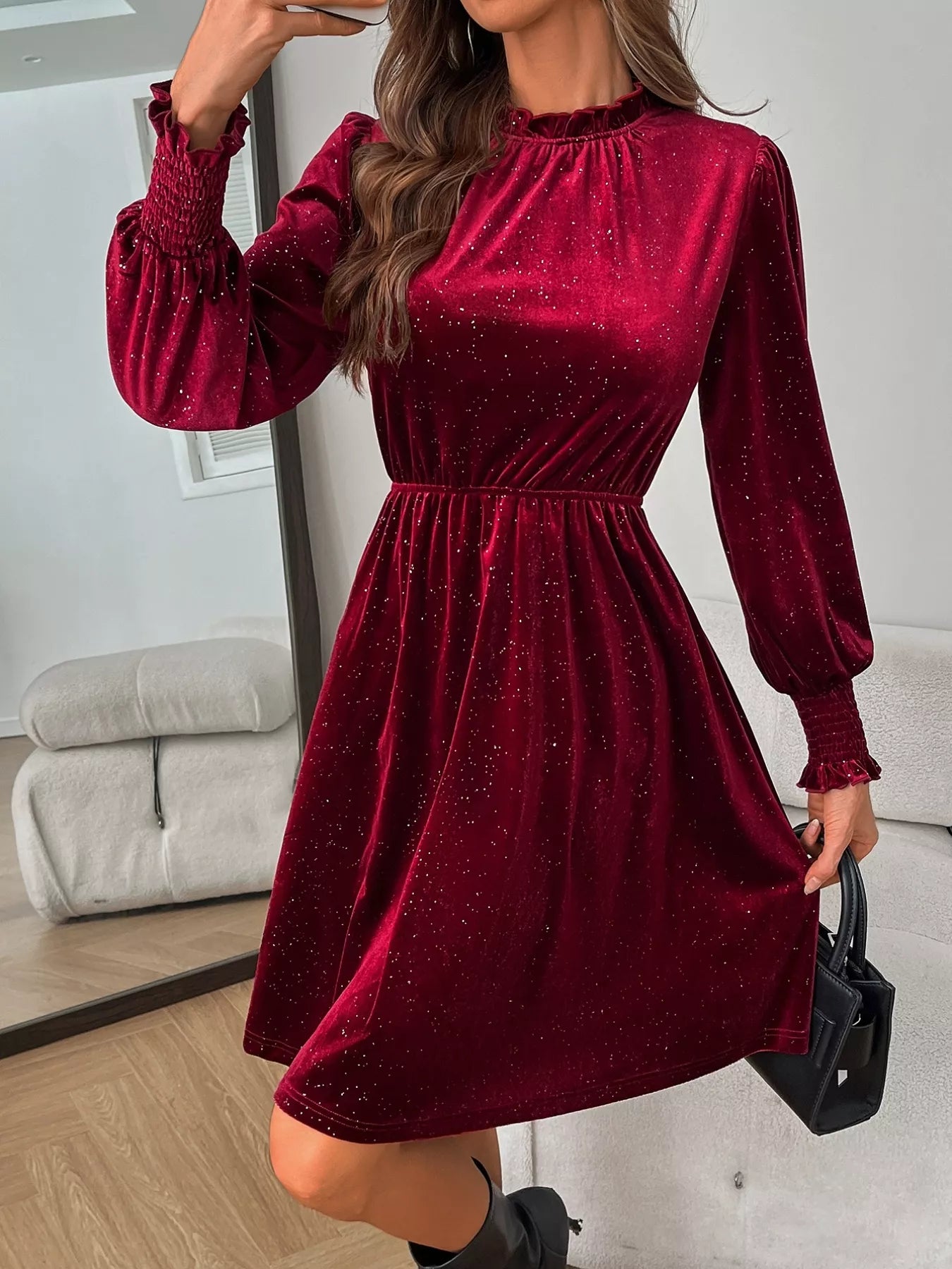 • Features:Basic style,Smocked,Frill